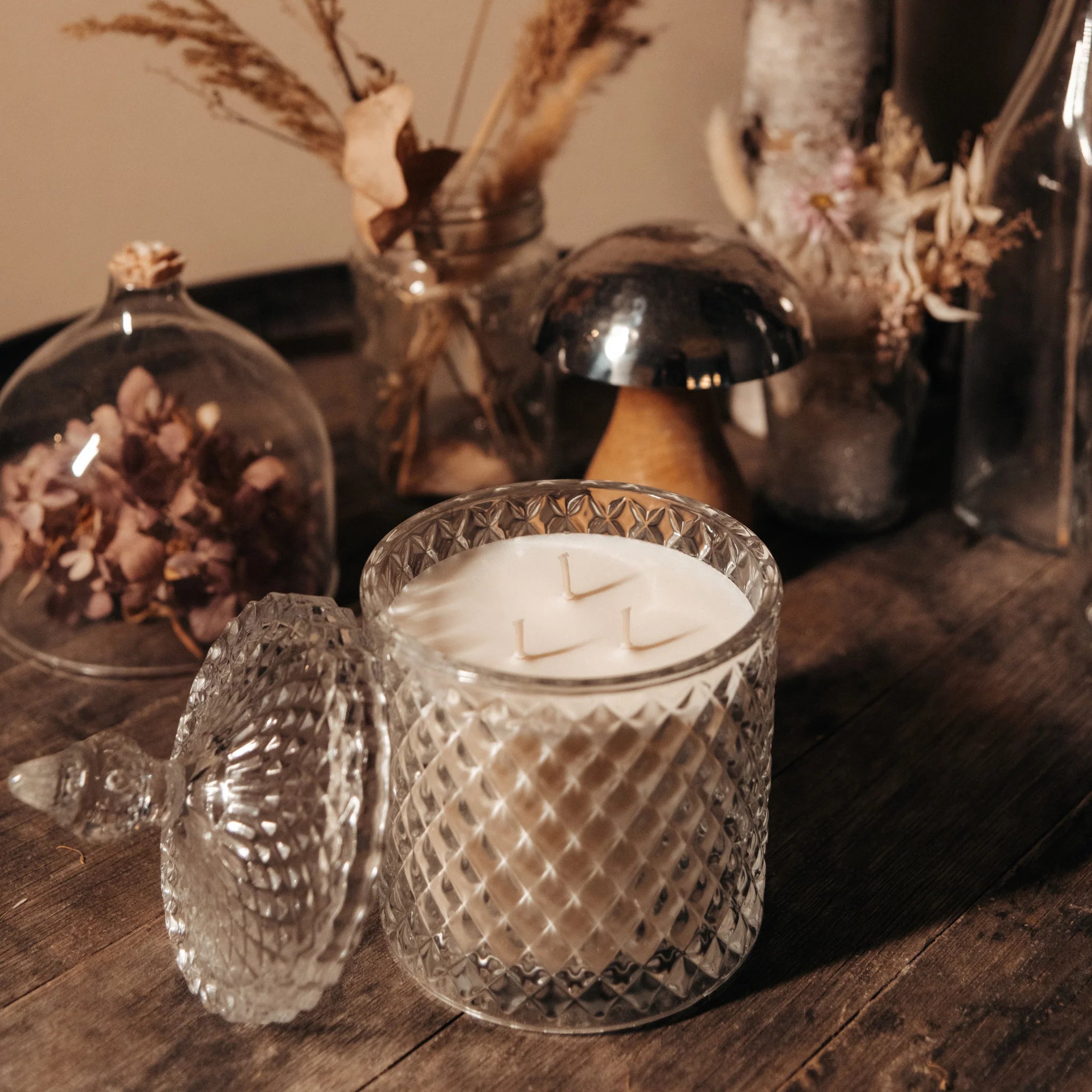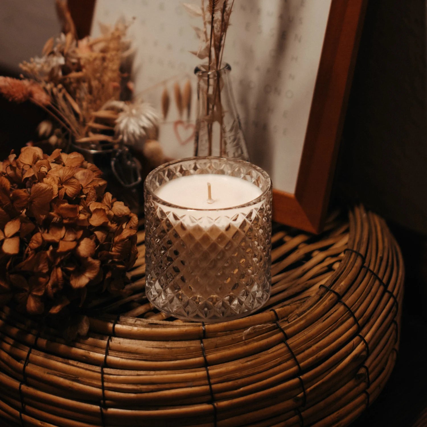 Pflege: Die empfohlene Brenndauer liegt bei 2-4 Stunden. Lösche deine Kerze erst, wenn der Wachs bis zum Rand vollständig flüssig ist. Der Docht sollte maximal 1 cm lang sein, kürze ihn vor jedem Anzünden. Nur so kann der Docht gut abbrennen.